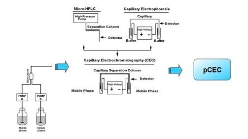 High-performance micro-flow electrochromatography is a new type of micromolecular separation analysis technology developed by combining the advantages of two modern separation techniques: high-performance liquid chromatography and capillary electrophoresis. By applying direct-current high-pressure electric fields at both ends of the capillary column or coated column, the sample's retention behavior in the capillary column is affected simultaneously by electrophoresis and its distribution coefficient between the mobile phase and stationary phase. Under the action of dual separation mechanisms, the pressure-assisted capillary electrochromatography has significantly enhanced its ability to separate micro-molecules, improving the analysis capacity, and representing a trend in high-efficiency micromolecular separation in analytical science. It is particularly suitable for studying complex biological and chemical systems.