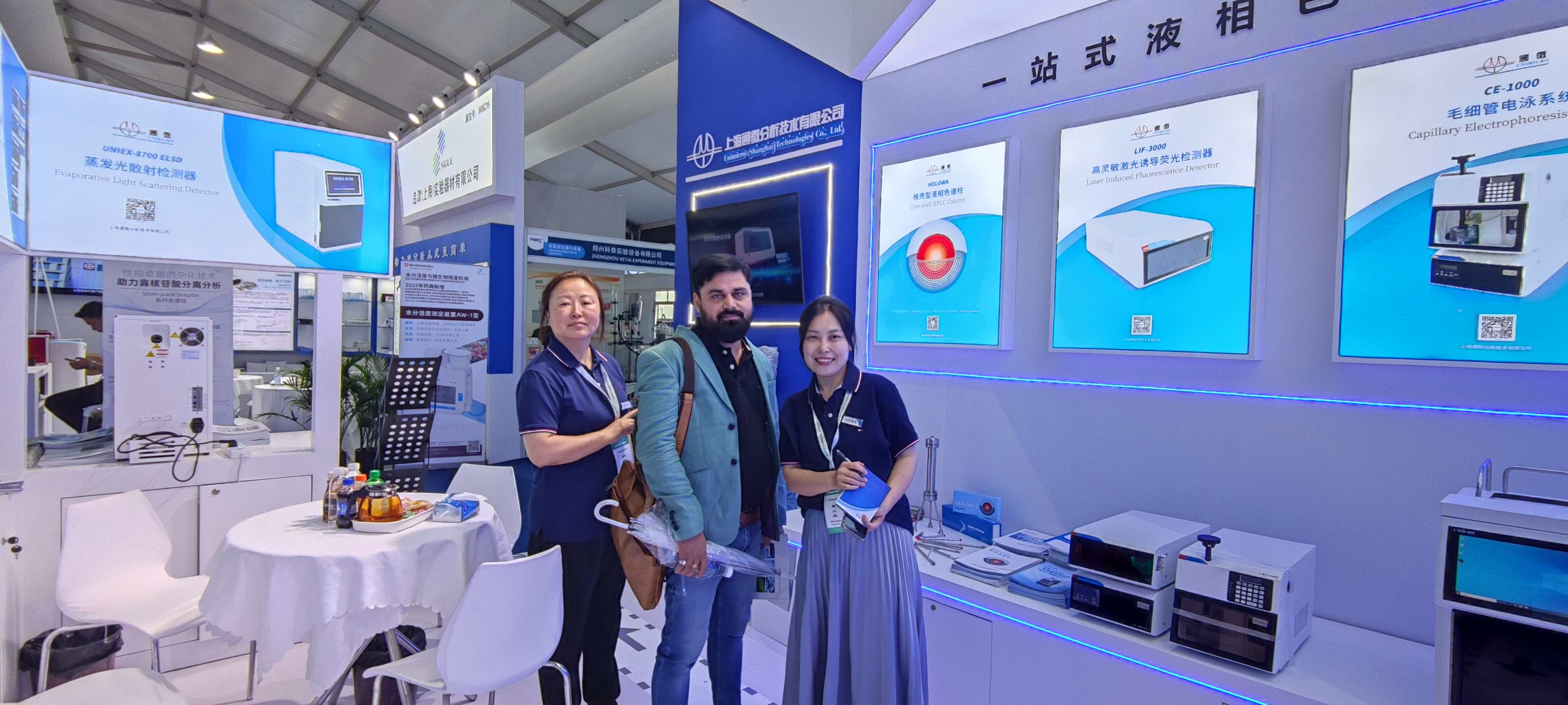 Unimicro has brought a number of core products to the exhibition, including electrokinetic high performance liquid chromatography (eHPLC), capillary electrophoresis (CE), High Performance liquid chromatography (HPLC), low pressure preparative chromatography (MPLC),evaporative light scattering detector (ELSD), column washing system (CWB), and multiple types of columns, etc. These products are technologically advanced and widely used in a wide range of applications. These products are technologically advanced and widely used in quite a few fields such as life science,biomedicine, food safety, environmental protection and chemical industry.Despite the continuous rainstorm during the exhibition, the enthusiasm of the visitors did not diminish. Domestic and foreign visitors flocked to the booth of and showed great interest in the Unimicro's products.