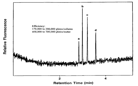 Amazing column efficiency, approximately 600,000 theoretical plates per meter!